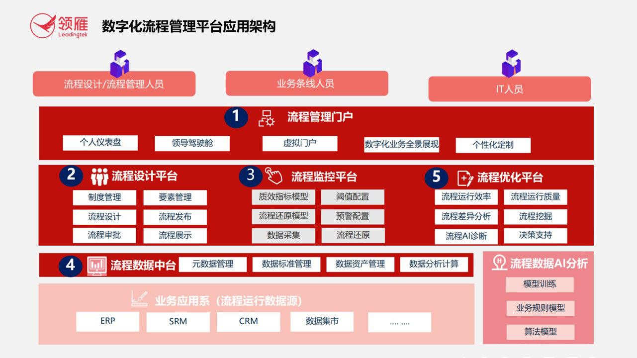 王涛认为,以领雁科技数字化流程管理平台为例,满足银行等金融机构的流程管理需要具备以下特点: